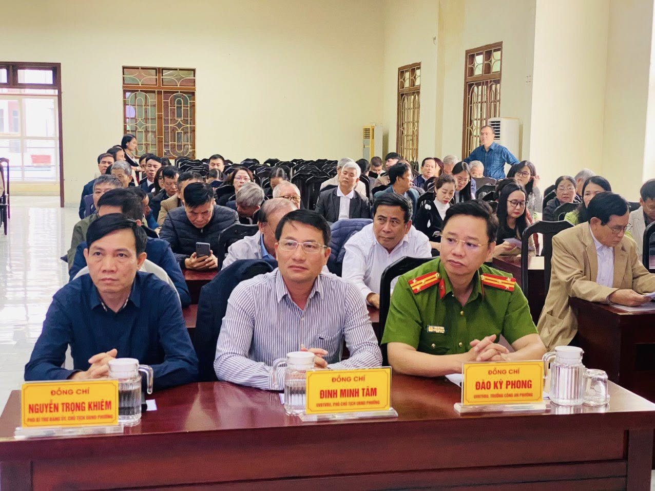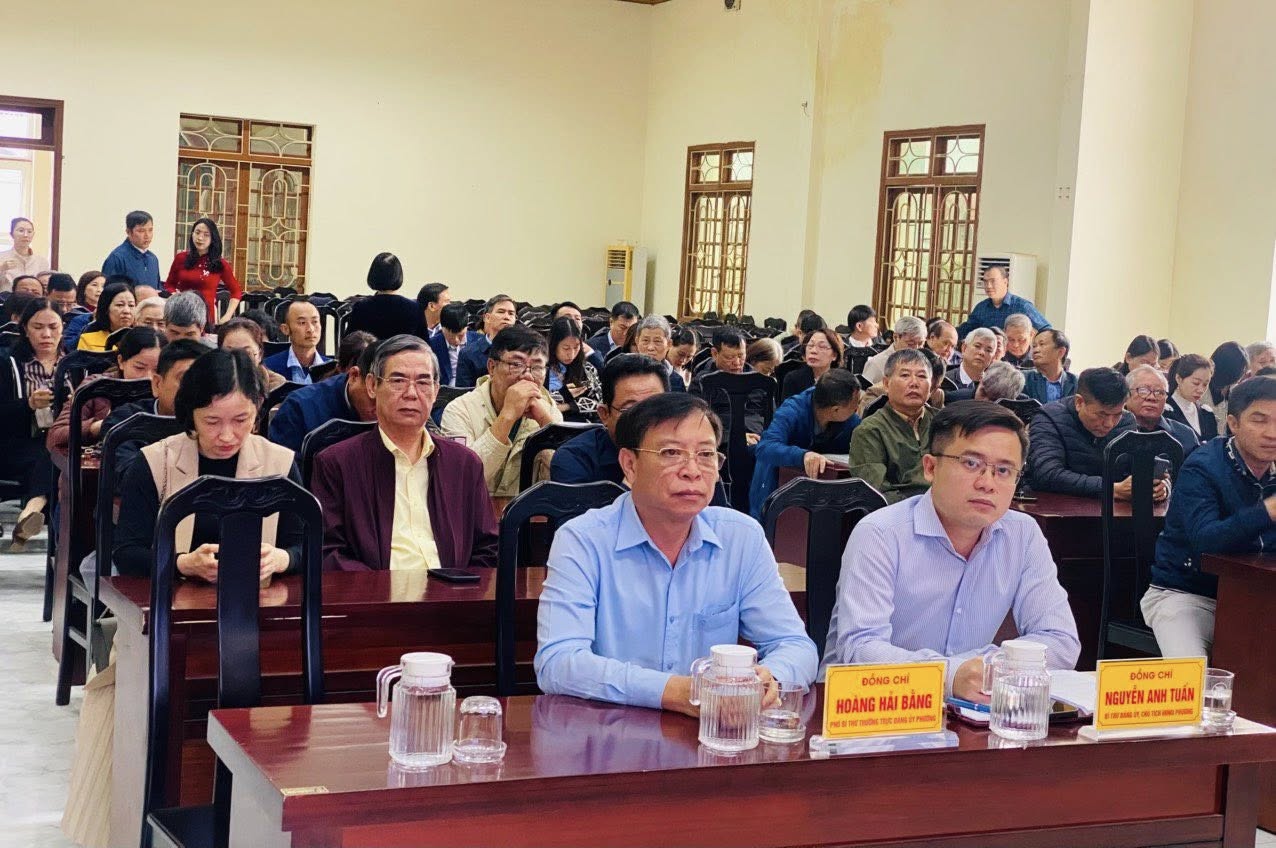 Tham dự hội nghị có các đồng chí trong Thường trực Đảng ủy, HĐND, UBND, UBMTTQVN, các tổ chức chính trị – xã hội, các phòng ban, đơn vị, trường học, 30 TDP thuộc phường, cùng đại diện doanh nghiệp và các nhà hảo tâm.